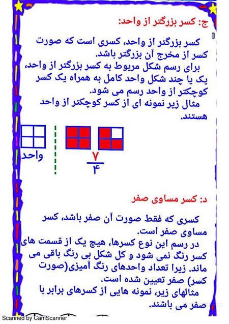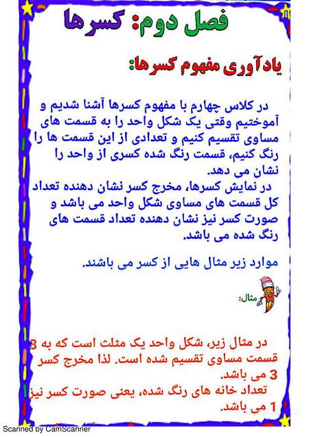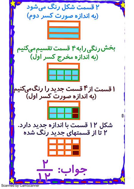 برای آموزش مبحث کسرها میتوانیم از یک قطعه کاغد رنگی مربع شکل استفاده کینم.