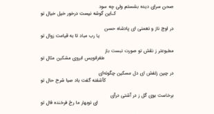 حق صحبت با پیران را به جا بیاور و به تجربه‌های گران‌قدر آنها بها و احترام قائل باش. زیرا این افراد، که سال‌ها از عمر خود را در مسیر زندگی سپری کرده‌اند، می‌توانند تو را به جایی هدایت کنند که در نهایت بهشت برین و آرامش روحی را برایت به ارمغان آورد. شانس بزرگی بر تو نازل شده است؛ بنابراین، آن را از دست نده و مانند یک دشت وسیع که بی‌محابا زیر پای کسی کوبیده می‌شود، بی‌فکری نکن. هرگز نباید بر بخت خویش لگد زد یا آن را نادیده گرفت. نوید خبری خوشایند و پر از رحمت و لطف الهی به تو داده می‌شود که می‌تواند زندگی‌ات را دگرگون کند. بنابراین خودت نیز باید همتی والا داشته باشی و با اراده‌ای قوی حرکت کنی، زیرا فر دولت در انتظار توست و تنها با تلاش و کوشش می‌توانی به آن دست یابی.